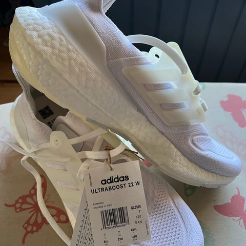 Adidas Pureboost sneakers i størrelse 38. Skoene er sorte og designet med en tekstiloverdel og en hvid mellemsål med Boost-teknologi. Velegnede til løb og almindelig brug. Brugt få gange.