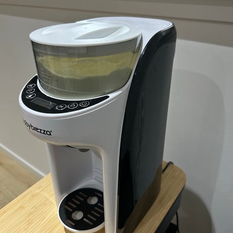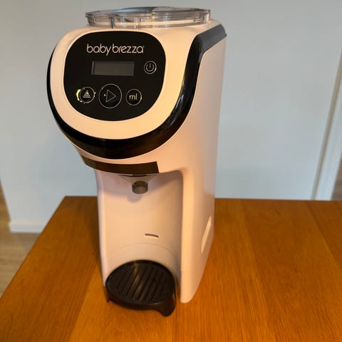 Baby Brezza Formula Pro Advanced er en automatisk modermælkserstatningsmaskine med tre temperaturindstillinger og ni forskellige mælkemængdeindstillinger. Maskinen har en aftagelig vandtank og er kompatibel med alle større modermælkserstatningsmærker. Den er designet til at blande og opvarme modermælkserstatning til babyflasker hurtigt og præcist.
