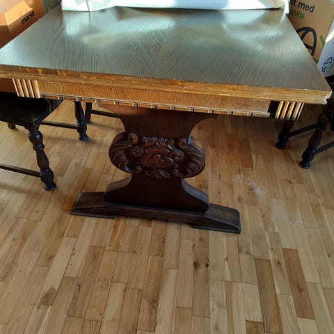Selve bordpladen er malet, men de 2 tillægsplader står med deres originale laminat.