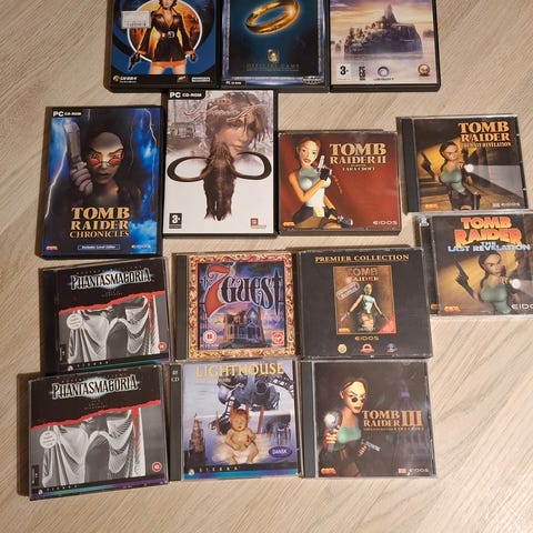 Alle spil har jeg selv købt i sin tid i butikkerne fra nye. Standen er rigtig god og uden ridser på skiverne, da de fleste aldrig har været spillet, men blot pakket ud af folien. Alle manualer og hvad der ellers har måtte medfølge i æskerne fra begyndelsen er inkluderet.