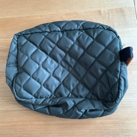 Håndsyet toilettaske med quilted Tana Lawn stof fra Liberty of London samt inderstof i økologisk bomuld i lyserøde og hvide tern🌸