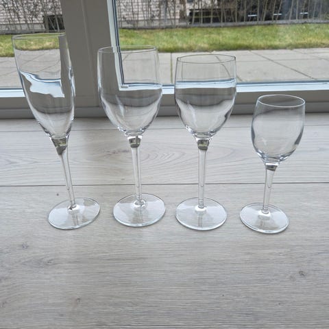 Glas, Vinglas, Ved ikke, 13 likørglas, 3 portvinsglas glas,2 hvidvinsglas’s, 4 Rødvinsglasf. Flot fod