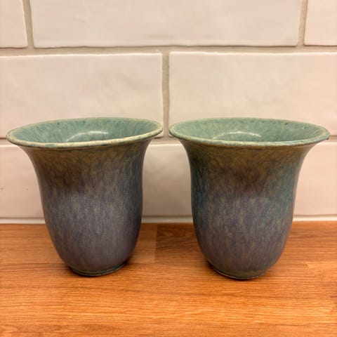 Kande/ vase fra "MARTIN A. CHRIST KUNST HJØRRING" med originalt klistermærke og en indgravering af signaturen "Dagmar".