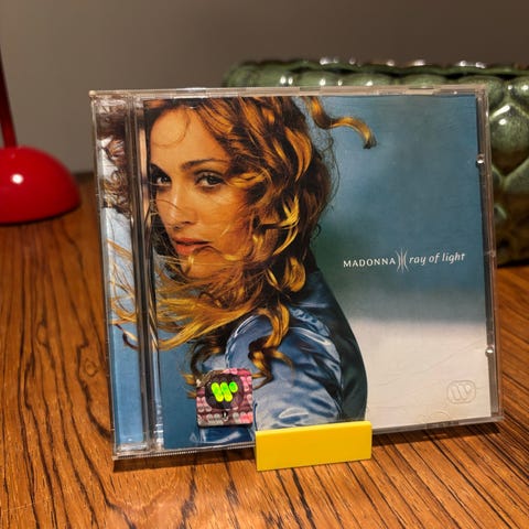 Madonna Ray of Light CD med musikalbum udgivet af kunstneren Madonna. Indeholder flere sange og leveres i standard CD-format med cover og booklet.