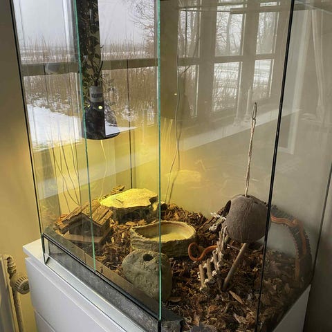 – Terrariet må ikke skiftes til noget mindre, du skal være indstillet på at han stadig vokser og derfor skal have et større terrarie på et tidspunkt.
