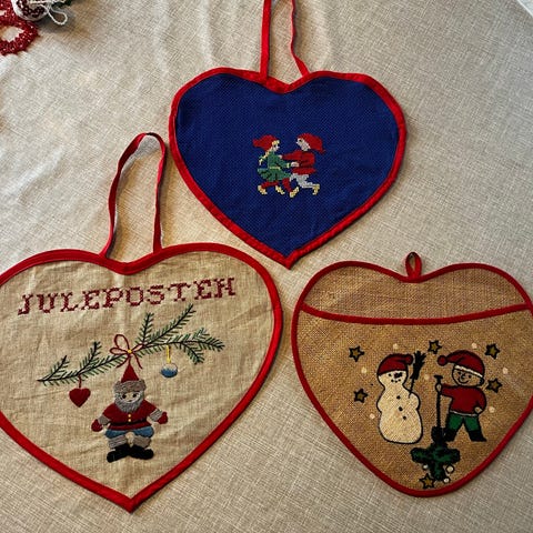 Broderet hæng til juleposten eller til at gemme små hemmeligheder i.