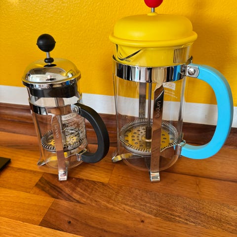 Bodum French Press kaffebrygger sæt bestående af tre størrelser. Kaffebryggerne har glasbeholder med rustfri stål ramme og håndtag. Designet til brygning af kaffe ved brug af stempelmetoden.