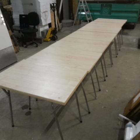 Kan ikke klappes sammen, men just i højden på alle ben 6 stk. Sælges helst samlet.