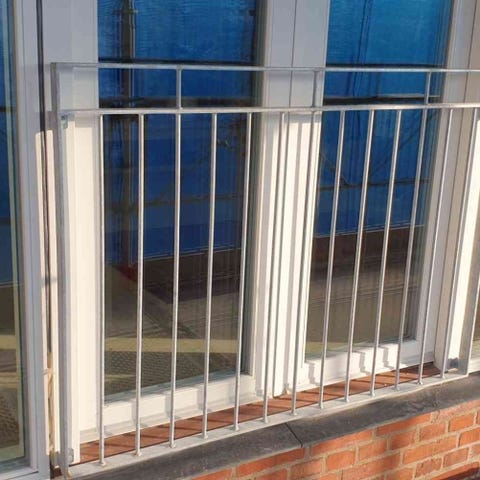 Galvaniseret fransk altan værn med lodrette udfyldninger.
