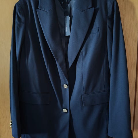 Sælger en Tommy Hilfiger Tailored blazer i en elegant mørkeblå farve. Fremstillet af eksklusivt italiensk stof fra Lanificio I.G. di Fabio – TONIC. Blazeren er i rigtig flot stand uden fejl eller slid.