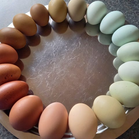 Almindlige hønseæg i forskellige farver