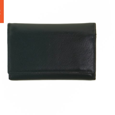 Denne pung er lavet af sort læder og har en klassisk foldbar stil med flere rum til opbevaring af kontanter og kort. Den har en holdbar metallås for at sikre indholdet. Pungen måler 11x10 cm og er ideel til daglig brug.