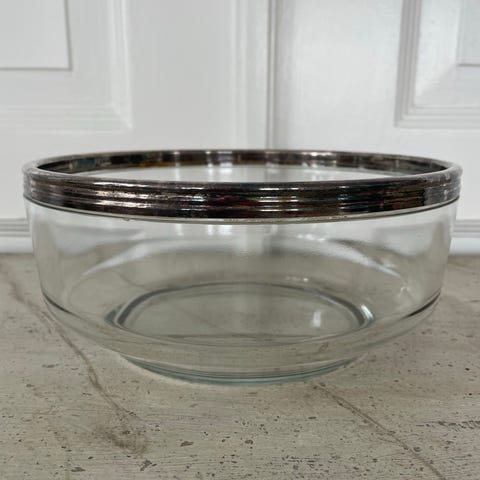 To meget fine og anvendelige glasskåle med sølvkant. Ø: 12 cm, H: 5 cm. Sælges samlet for 150 kr.