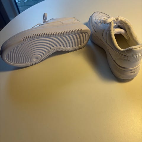 Nike sneakers i størrelse 38,5. Sneakersene har en lav profil med et traditionelt snøresystem og er perfekte som hverdagssneakers. Skoene er lavet af hvidt tekstilmateriale med en synlig Swoosh, mens de bløde indlægssål tilfører ekstra komfort.