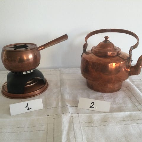 Kobber fondue gryde med låg og varmer (str. Ø. 15,5 cm)