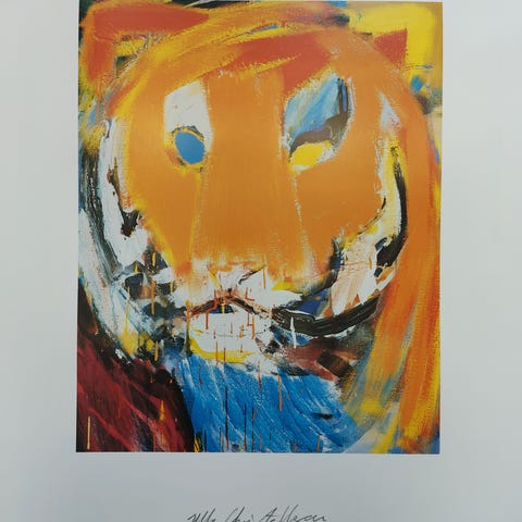 Lithografi af Uffe Christoffersen håndsigneret der måler 49x33,5 cm. Illustrationerne viser farverige tigre mod en orange baggrund. Den er indrammet i en tynd, sort ramme. På bagsiden er der information om kunstneren og en angivelse af, at printet er skabt som 'Årets Kunstner 2009' for Ballerup Kommune.