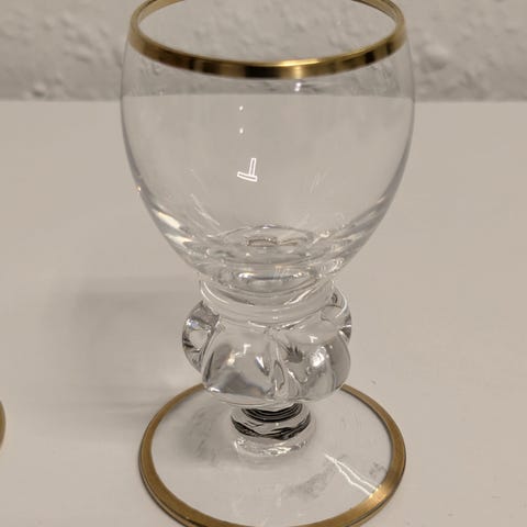 7 stk. designet af Jacob E. Bang, med guldkanter, højde 7,2 cm, diameter 5,5 cm, velholdte.