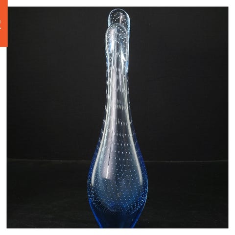 Blå glasvase skål (str. Ø. 16,5 cm. længde. 16 cm)