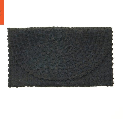 Elegant beige clutch with a textured crocodile pattern and gold-tone corner accents. The clutch is designed to hold essentials such as a wallet, phone, and keys, perfect for formal occasions or an evening out. It features a flap opening for secure storage and a streamlined look. The dimensions of this clutch are 28x14 cm.