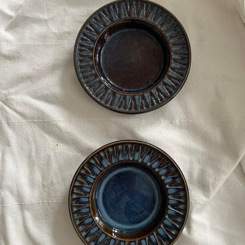 Blå keramisk fad fra Søholm Stentøj (str. 27,5x27,5 cm)