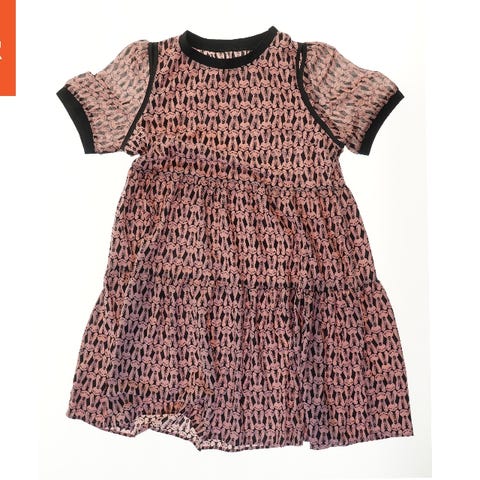 En rød kjole med korte ærmer og en rynket underdel i tyl. Kjolen har en bånddetalje rundt om livet og lukkes med lynlås bagpå.