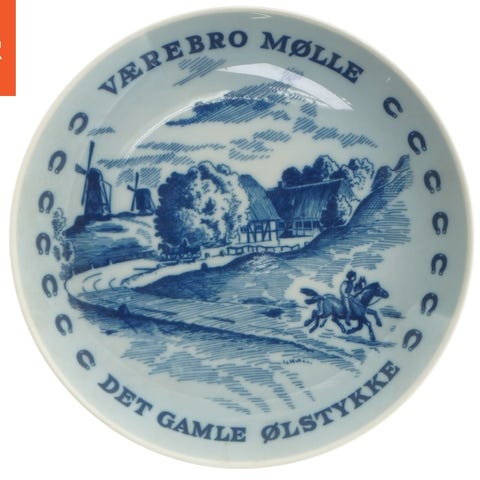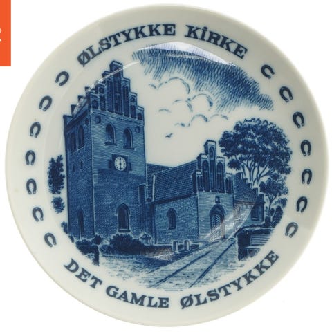 Porcelænsplatter med Ølstykke Station fra Lise Porcelain (str. Ø 19,5 cm)
