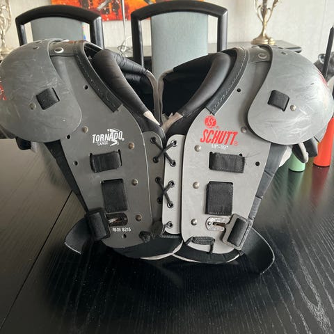 Schutt Vengeance amerikansk fodboldhjelm i lilla farve med hvidt gitter. Hjelmen har polstring indvendigt for beskyttelse og komfort. Designet til amerikansk fodbold og egnet til brug af spillere til hovedbeskyttelse under træning og kamp.i god stand