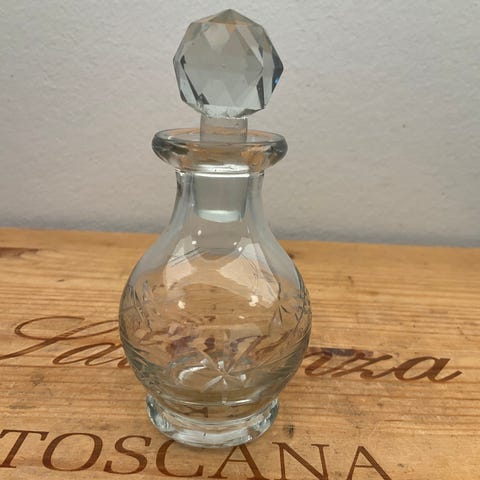 Virkelig flot vintage karaffel. Så fin til hjemmebaren, til pynt eller på det smukt dækkede bord. Ingen skår. Se billeder for mål. Sender gerne. Pakker godt ind.