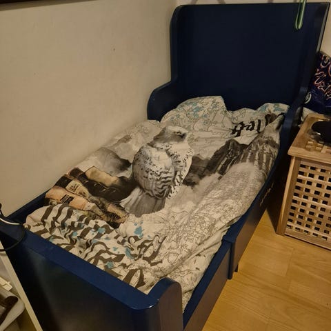 Udtræksseng i hvid mål 80x200 - kan justeres i længden. Madras medfølger. Som ny. Brugt i ca. 1 år til et barn. Ingen synlige pletter eller tegn hverken på sengen eller madrassen.