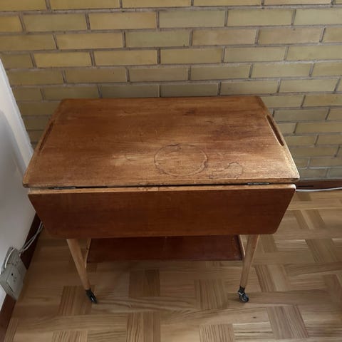 Lille klapbord på hjul teak retro, pænt men trænger til lidt olie .