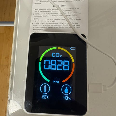 BQ30 - CO2 Luft kvalitets måler derudover måler den også antal partikler, temperatur og luftfugtighed.