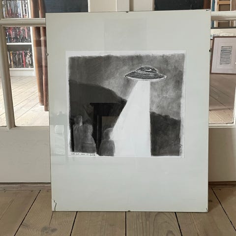 Rammemål: Højde ca. 32 cm. Bredde ca. 25,5 cm. Lidt pletter og smuds’ på papiret. Sender ikke.