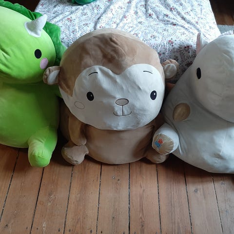 Den gule bamse med ballonen er til ophæng (uro).