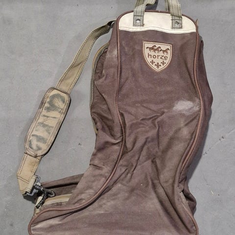 Støvle taske fra Horze, mørkeblå. Købt for under et år siden, de støvler der har været i er brugt under 10 gange - så eneste brugsspor der er, er lidt støv og andet fra stalden☺️ alt på støvletasken er intakt!