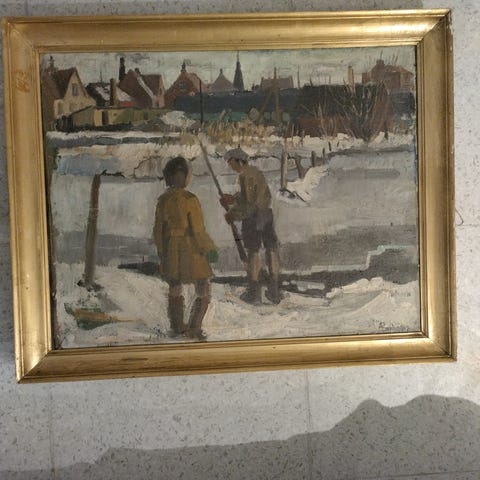 Oliemaleri med ukendt signatur. Dimensioner 65x60 cm