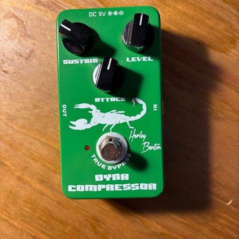 Harley Benton Digital Delay guitarudstyr med kontrolknapper til Time, Repeat og Level. Enhedens design inkluderer blå farve med hvid grafik og en fodkontakt til aktivering.