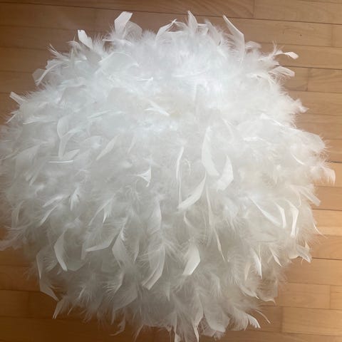 Smuk lampe i gåsefjer. Mærket hed før Vita, nu Umage, modellen er EOS, Ø 45 cm, også kaldet str medium. Inkl fatning og pære. Lampen har lidt patina, har hængt fremme. Den er ikke helt hvid. Der er nogle små sprækker nogle steder indvendigt, men intet man kan se udenpå eller som har nogen betydning. Sælges til afhentning, kan efter aftale også hentes i Horsens C.