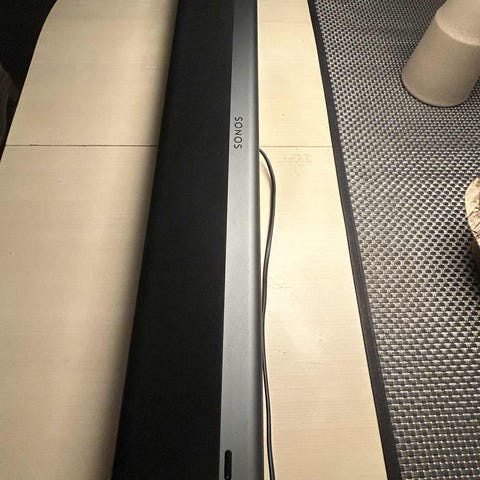 Sonos Playbar soundbar. Sort farve. Designet til at forbedre lydoplevelsen ved tilslutning til tv og andre lydkilder.