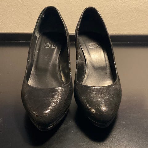 Helt nye sorte skindsko m/8 cm hæl - kommer i original æske og har bon