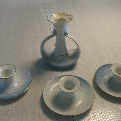 Bing & Grøndahl lysestage 2 armet Mågestel m. Guldkant.