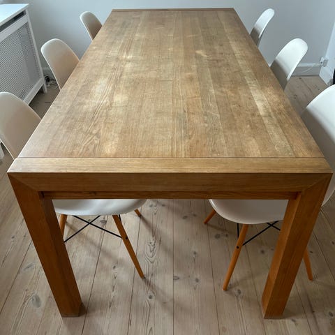 Jeg har med jævne mellemrum behandlet bordpladen og benene med en træolie, som ligeledes medfølger.