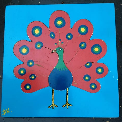 Vintage puslespil i træ. En af brikkerne har været repareret derfor den lave pris