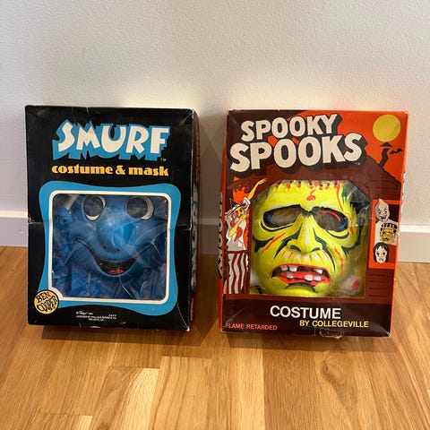 Meget gamle fastelavns masker. Har aldrig været brugt.