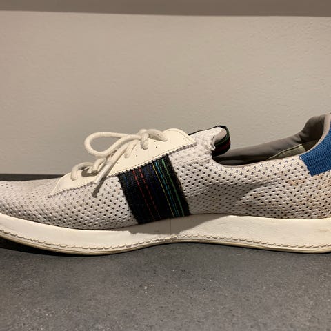 Sneakers i størrelse 42. Skoene er lavet i blåt materiale med snørebånd og har en brun sål. Velegnede til formelle lejligheder eller events, hvor et pænt og stilfuldt fodtøj ønskes.