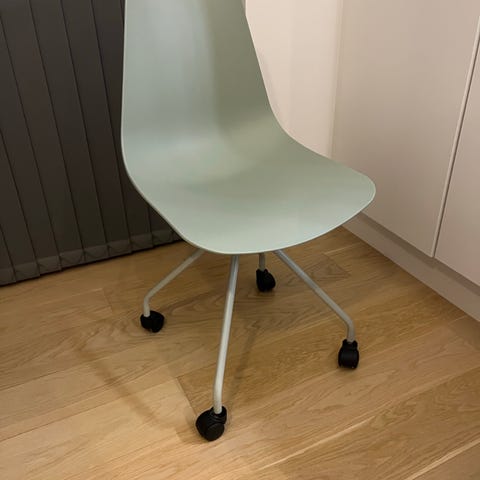Helt enkel kontorstol fra Søstrene Grene i mintgrøn farve.