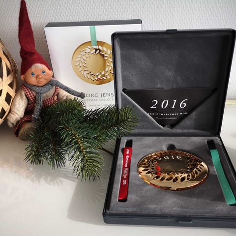 Georg Jensen juleuro år 2002, i metal med rød sløjfe. Brugt enkelte gange, i original æske.