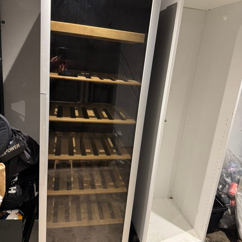 Vinkøleskab fra Vestfrost. 2 låger. Lukket låge. Træhylder. Flot stand.