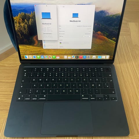 Sælger denne vanvittigt velholdte 13” MacBook Air i farven spacegrey med Apples M2-Chip, 256 gb harddisk, 8 gb ram med touch-id.