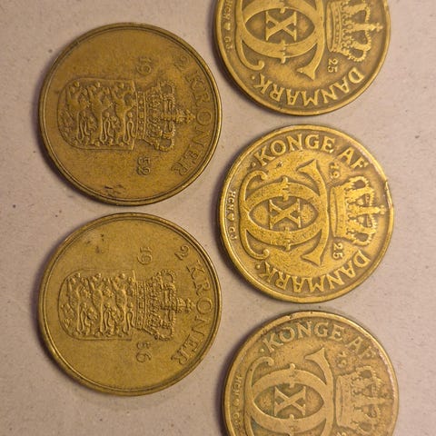2 stk 2 kroner Danmark 1924 og 1941 og 1 stk 1 krone 1941. Gode årgange