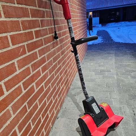 Qi-JY-1300 sneglavner i rød farve. Elektrisk drevet med ledning. Designet til effektiv fjernelse af sne fra mindre områder.